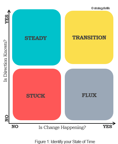 FLUX: When direction is not known and change is happening. This is a period of experimentation, openness, and uncertainty—embracing the unknown and trying new approaches without knowing exactly where they will lead. It feels chaotic but is ultimately generative.